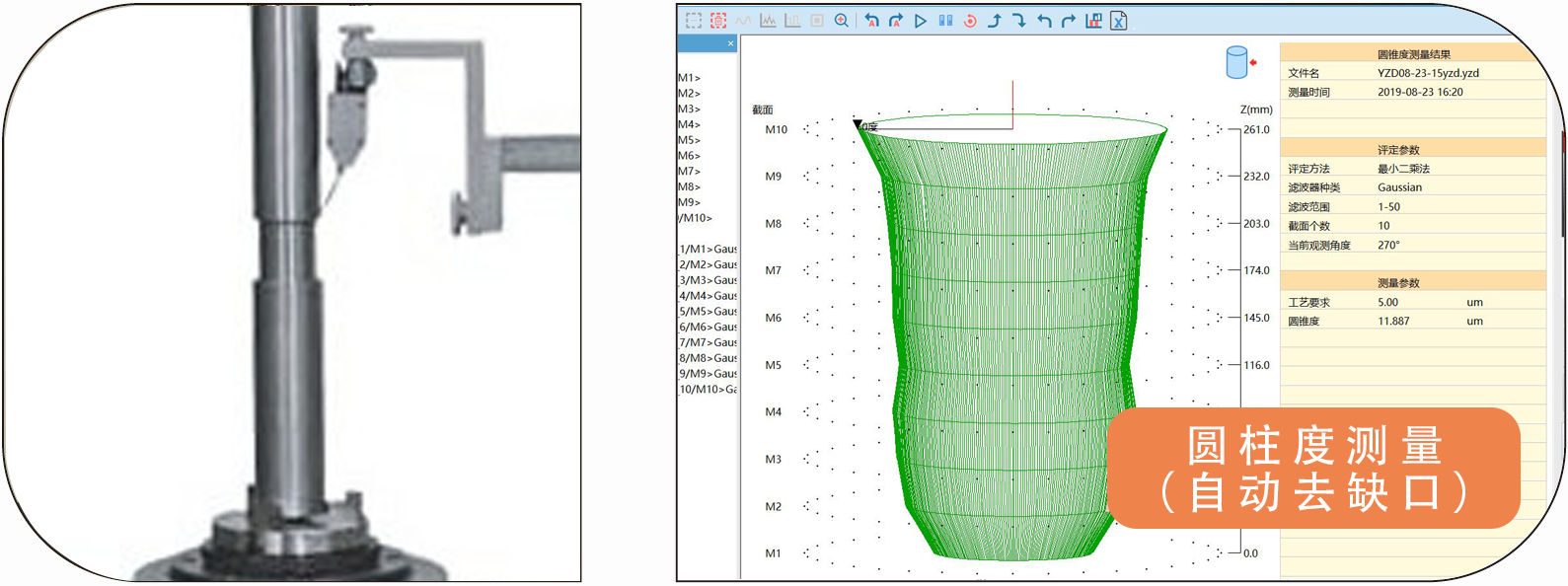 可測各種規(guī)則、不規(guī)則的環(huán)形工件的圓(柱)度、直線度、跳動、全跳動、錐度、直徑、同心度、同軸度等。